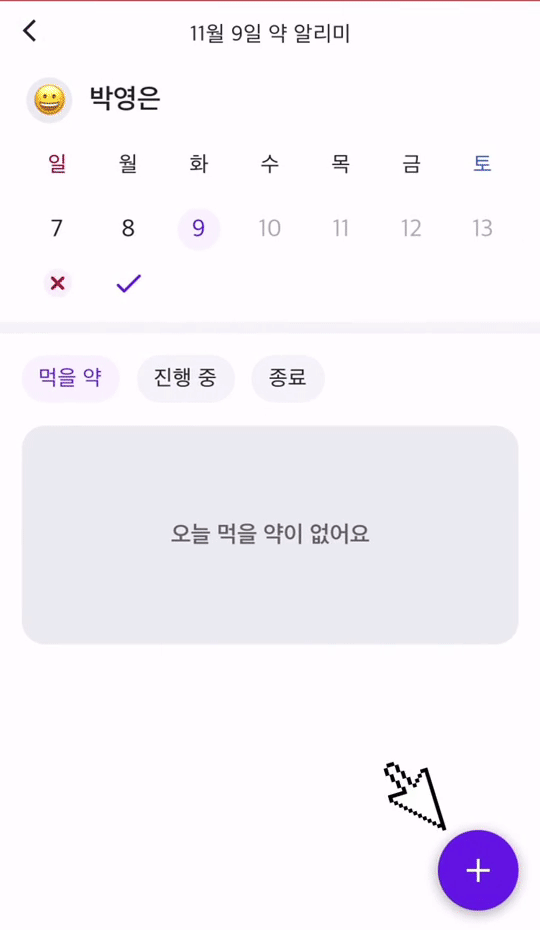 STEP 2. 하단 + 버튼을 눌러 알림 설정할 약의 이름을 추가해주세요.