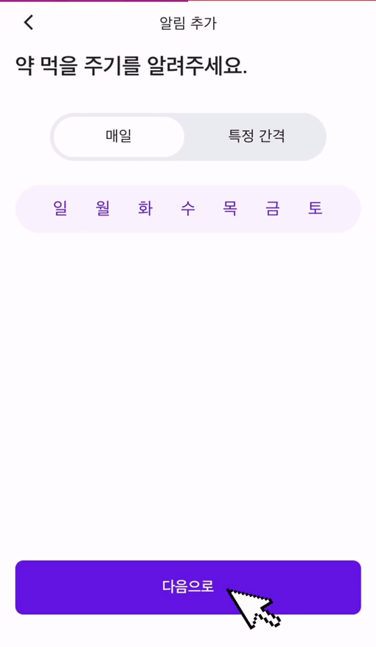 STEP 3. 매일 혹은 특정 간격으로 약 먹을 주기와 약 복용 기간을 설정해주세요.