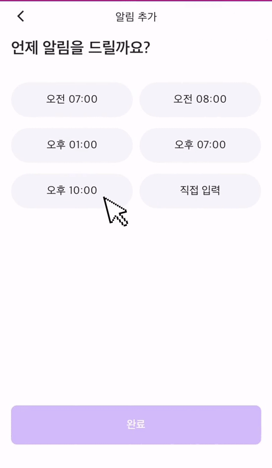 STEP 4. 마지막으로 약 알림 받을 시간을 설정하면 끝!
