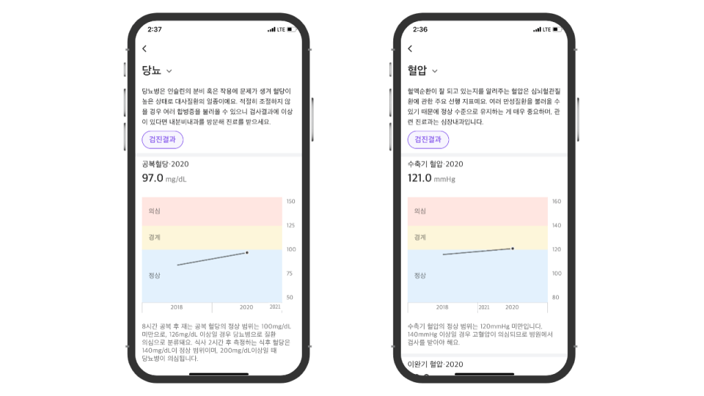 본인 인증만 완료하면, 과거 건강검진 결과까지 한번에!👇👇