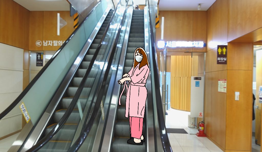 마치 이곳은 ○▵□게임의 한 장면같이 똑같이 옷을 입은 사람들이 줄을 서서 들어갑니다. 세모네모 가면을 쓴 관리자는 없지만, 친절한 간호사 선생님들의 안내를 받으며 다음 미션을 향해 어디론가 끊임없이 흘러갑니다. 안내에 따라 9번방에 들어가 채혈 미션도 가뿐히 완료합니다. 채혈할 때는 주삿바늘과 눈을 마주치지 않는 것이 가장 중요합니다. 한 번 마주치면, 그 두려움에 팔을 찌르는 바늘이 더 따갑게만 느껴지기 때문에 되도록 바늘과 눈을 마주치지 않은 채 고개를 돌리고는 세게 때려달라 하면 조금 덜 아픈 기분이 납니다.