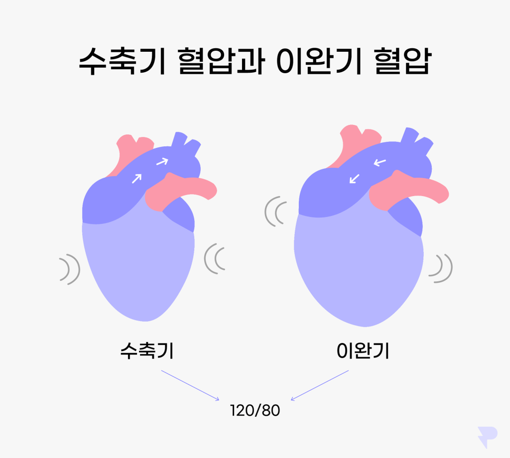 혈압 검사를 통해 우리는 수축기 혈압과 이완기 혈압 총 2가지 수치를 확인할 수 있어요.