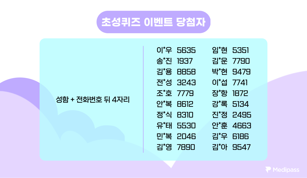 메디패스 초성 퀴즈 이벤트 당첨자 결과 발표
