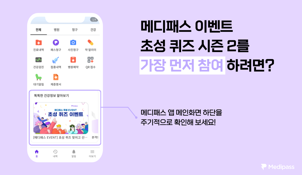 (소곤소곤💬 메디패스 앱 내 메인페이지에 가장 먼저 이벤트가 나타날 예정이니 메디패스 앱을 지켜봐 주세요~!)
