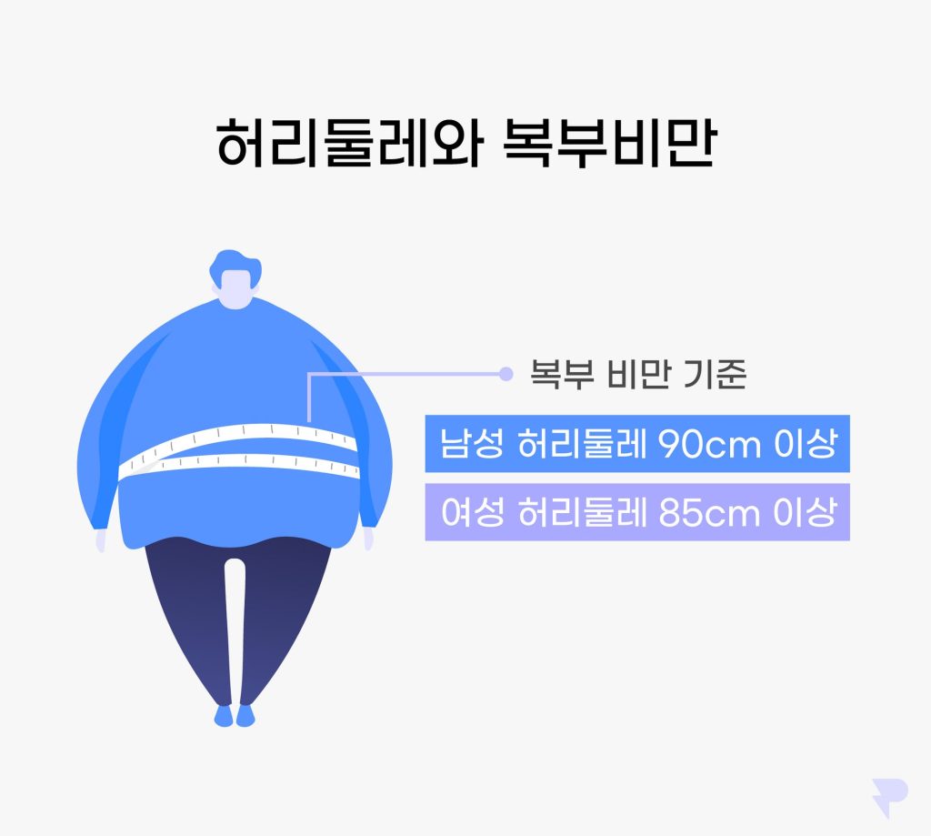 복부비만 기준은 남자 허리둘레 90 cm 이상, 여자 85 cm 이상이에요.
