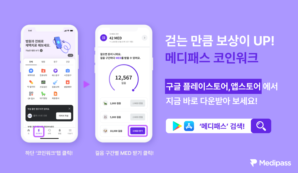 내가 걸은 만큼 보상이 UP! 메디패스 코인워크