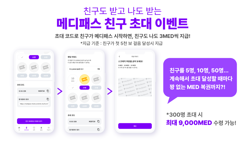 이렇게 혜택이 많은 메디패스 친구 초대 이벤트, 참여를 안 할 수가 없겠죠?