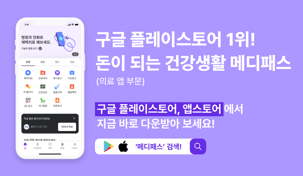 안녕하세요, 돈이 되는 건강생활 앱 메디패스입니다.
