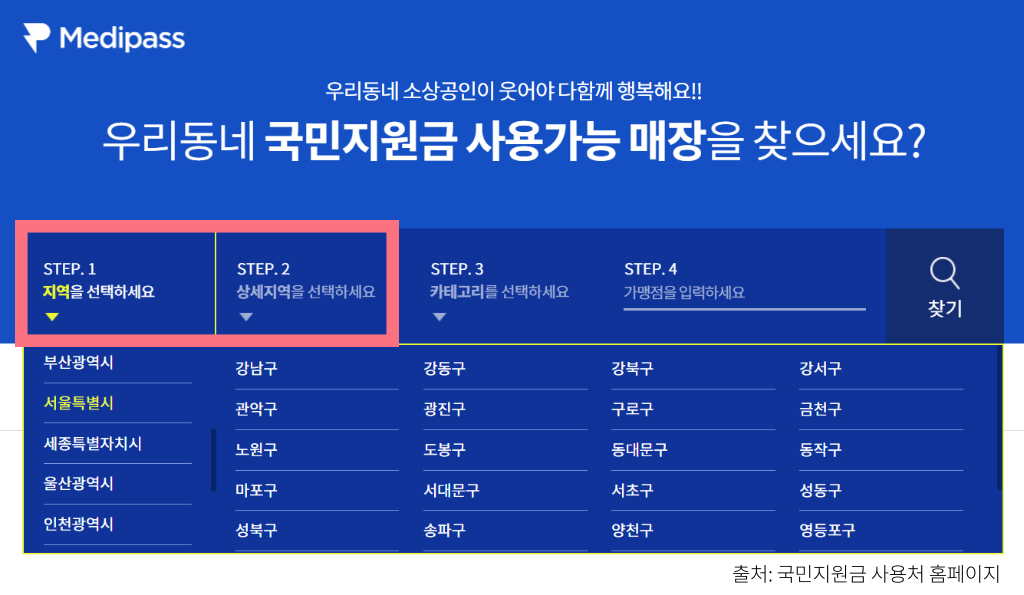 STEP 1. 먼저 국민지원금 사용처 홈페이지에 방문해주세요.