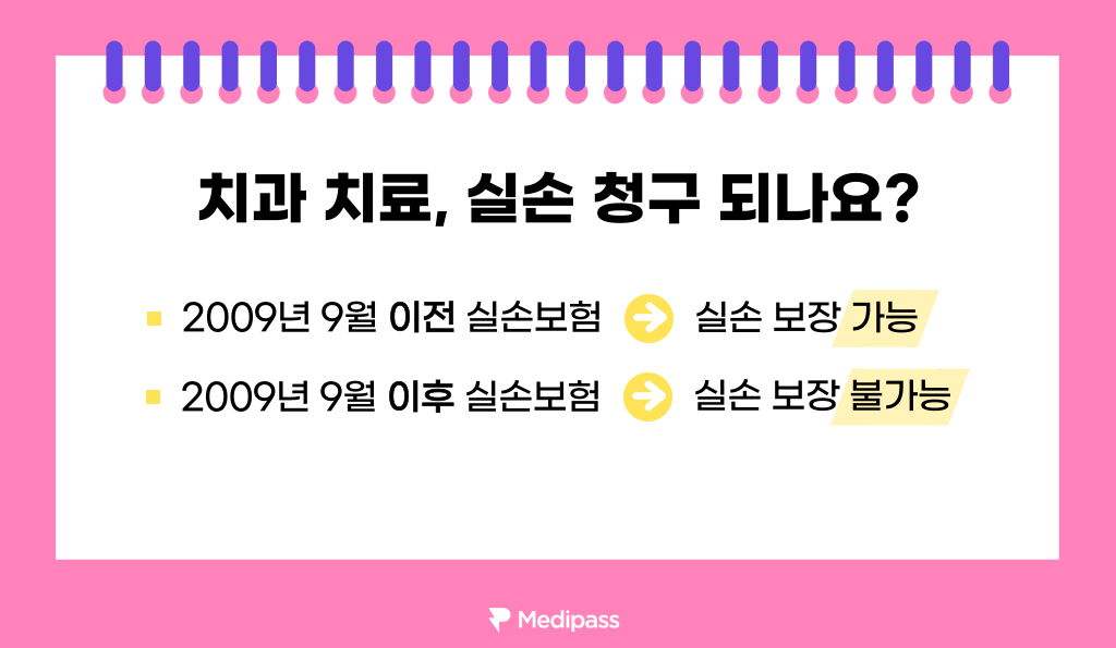 ▪ 2009년 9월 이전 실손 보험에 가입되어 있나요? → 치과 치료 보장받지 못해요.