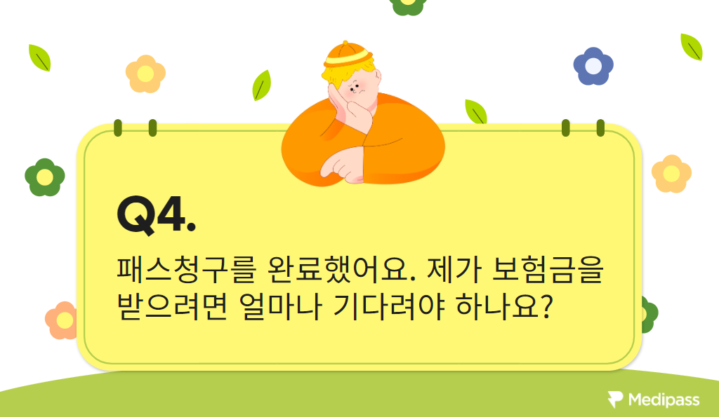 Q4. 패스청구를 완료했어요. 제가 보험금을 받으려면 얼마나 기다려야 하나요?