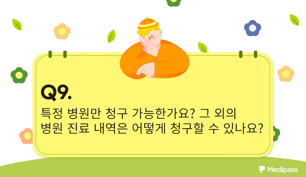 Q9. 특정 병원만 청구 가능한가요? 그 외의 병원 진료 내역은 어떻게 청구할 수 있나요?