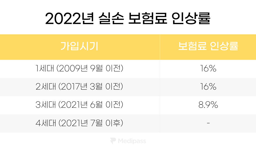 그 중 실손보험료가 가장 많이 오른 가입 시기는 바로 1세대와 2세대!