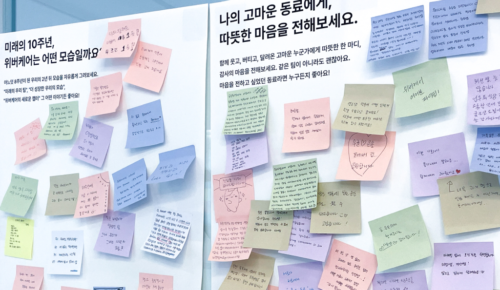 - 2년 후의 위버케어를 그려본 질문에는 “성장한 팀, 더 단단해진 우리”, “글로벌로 뻗어나가는 위버케어” 등 위버케어의 내일을 기대하는 다채로운 상상들이 가득했고,