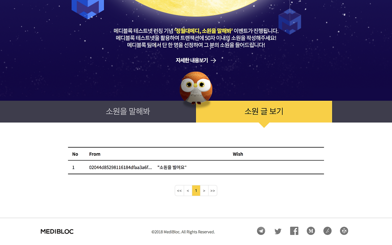 *이벤트 페이지(event.medibloc.org)의 ‘소원 글 보기’를 클릭하시면, 작성하신 소원을 확인하실 수 있습니다.