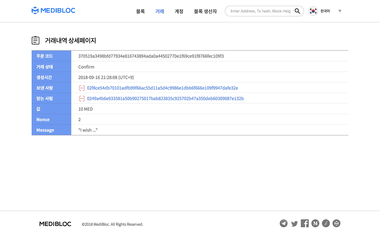 *소원 트랜잭션 생성은 10MED 이상부터 소원이 등록됩니다.