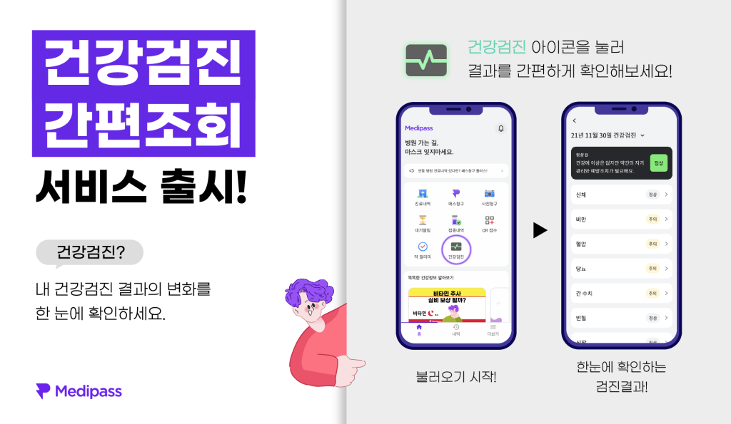 저희가 새로 선보인 메디패스 건강검진조회 기능이 특별한 점은 이렇답니다.