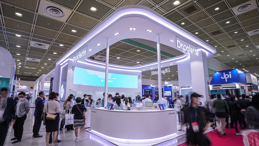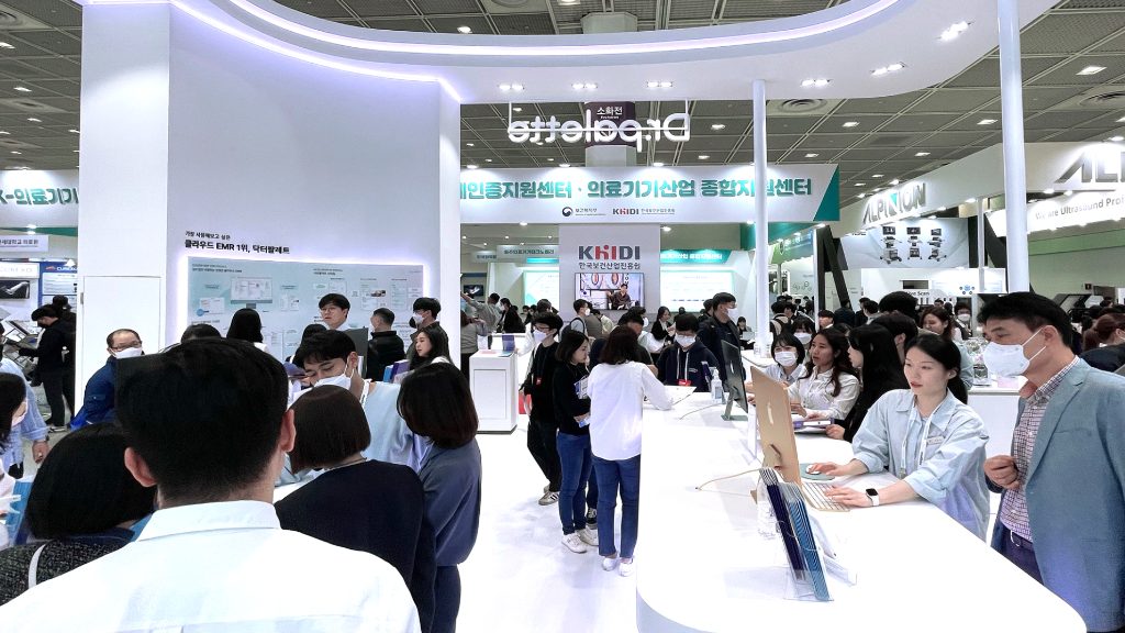 KIMES는 올해 두 번째 참가로 이번 부스는 작년과 다르게 클라우드 EMR인 닥터팔레트를 전면에 내세워 제품에 대한 자부심을 드러냈습니다.