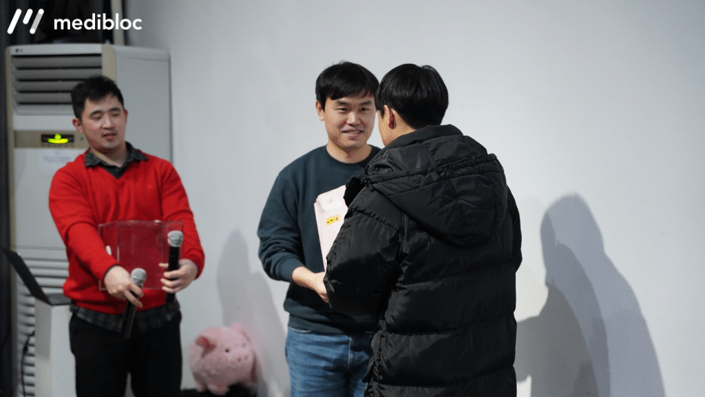 두 번째 행사는 대표님들께 익명으로 질문할 수 있는 질의응답 시간이었습니다. 멤버분들은 익명 질문을 통해 5년 뒤 메디블록은 어떤 모습일지 물어보기도 하였고, 대표님들의 삶의 목표 등에 대해서도 물어보았습니다. 다양한 건의사항도 나왔는데, 아무래도 익명으로 진행하는 만큼 여느 때보다 대표님과 직원분들의 솔직하고 진솔한 이야기를 들어볼 수 있는 시간이었습니다.