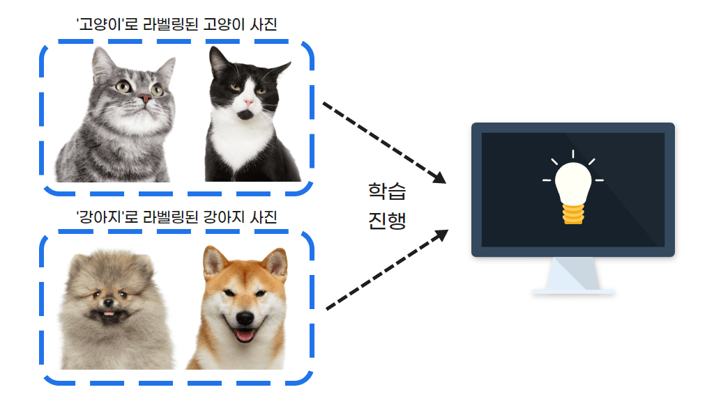 그래서 이 기준을 사람이 직접 세우는 것이 아닌, 컴퓨터가 학습을 통해서 찾아 나가도록 했다네. 이것이 ‘기계학습’의 간단한 개념이라네. 결국 컴퓨터는 라벨링된 강아지와 고양이 사진 데이터셋을 학습해서, 꽤 높은 정확도로 강아지와 고양이를 구분할 수 있게 되었다네.