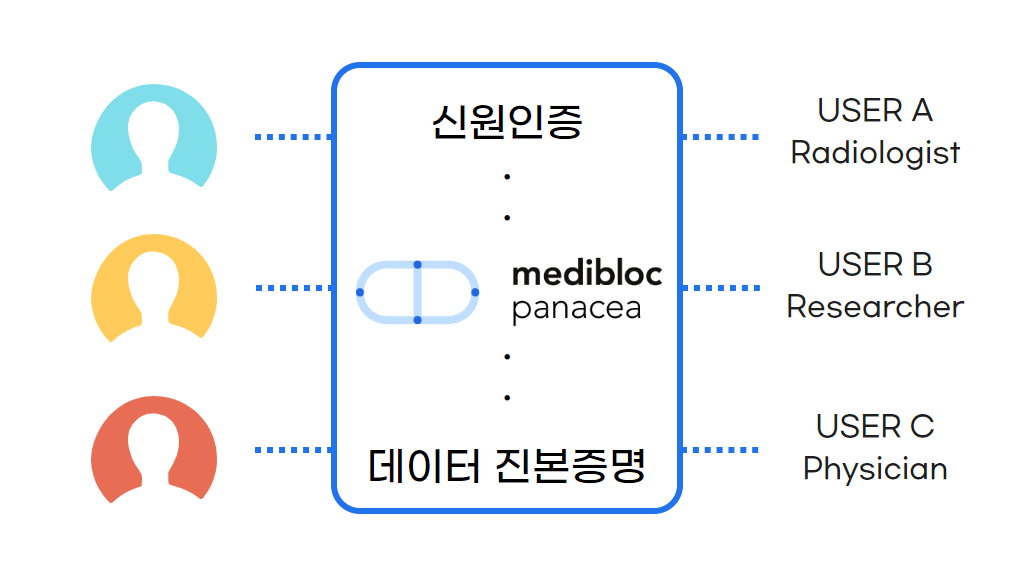 메디블록의 블록체인인 패너시어가 활용된다네. 위의 내용을 참고해보면 알겠지만, 레이블링 작업은 굉장히 중요하다네. 확인되지 않은 유저가 레이블링을 진행한다면, 인공지능이 잘못된 데이터셋을 기반으로 잘못된 학습을 할 확률이 높아진다네. 그러므로 영상 판독에 전문성이 있는 유저의 신원 인증은 굉장히 중요하다네. 바로 이 신원증명에 메디블록의 블록체인 패너시어가 활용이 되는 것이라네.