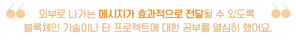 “또한 스타트업인 메디블록에서는 프로젝트의 기획단계부터 마케팅 인사이트 제안을 할 수 있어요. 이때 커뮤니티 매니저로서 일했던 경험이 반영되면서 엔드유저 입장에서 피드백을 제안할 수 있었죠.”